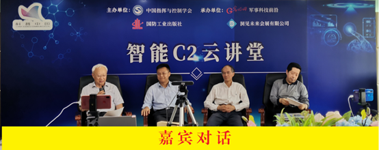 嘉宾对话环节由中国指挥与控制学会理事长费爱国院士主持,三位嘉宾围绕“目前人工智能技术发展主要是计算智能和感知智能的突破,而认知智能是什么,认知智能技术是什么形态?”“智能化战争的智能体系在哪些方面”“军事智能化发展中科技社团如何更好发挥平台作用”等议题展开讨论。随后的网友互动环节,嘉宾针对网友关心的几个问题做了解答。